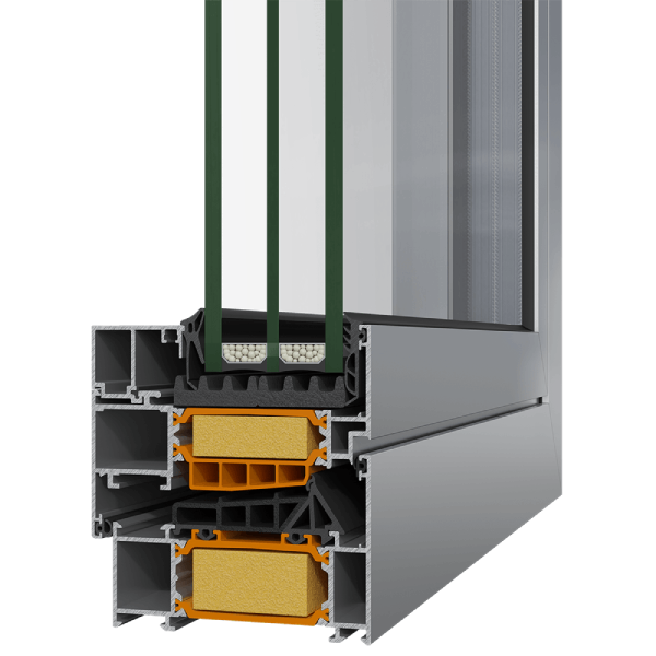 Системата предлага отлични показатели по отношение на топлоизолация, водоплътност и шумоизолация, което я прави надеждно решение за съвременни и взискателни архитектурни проекти.