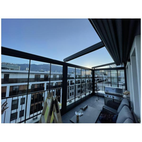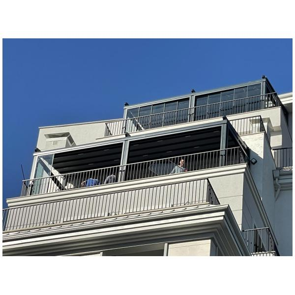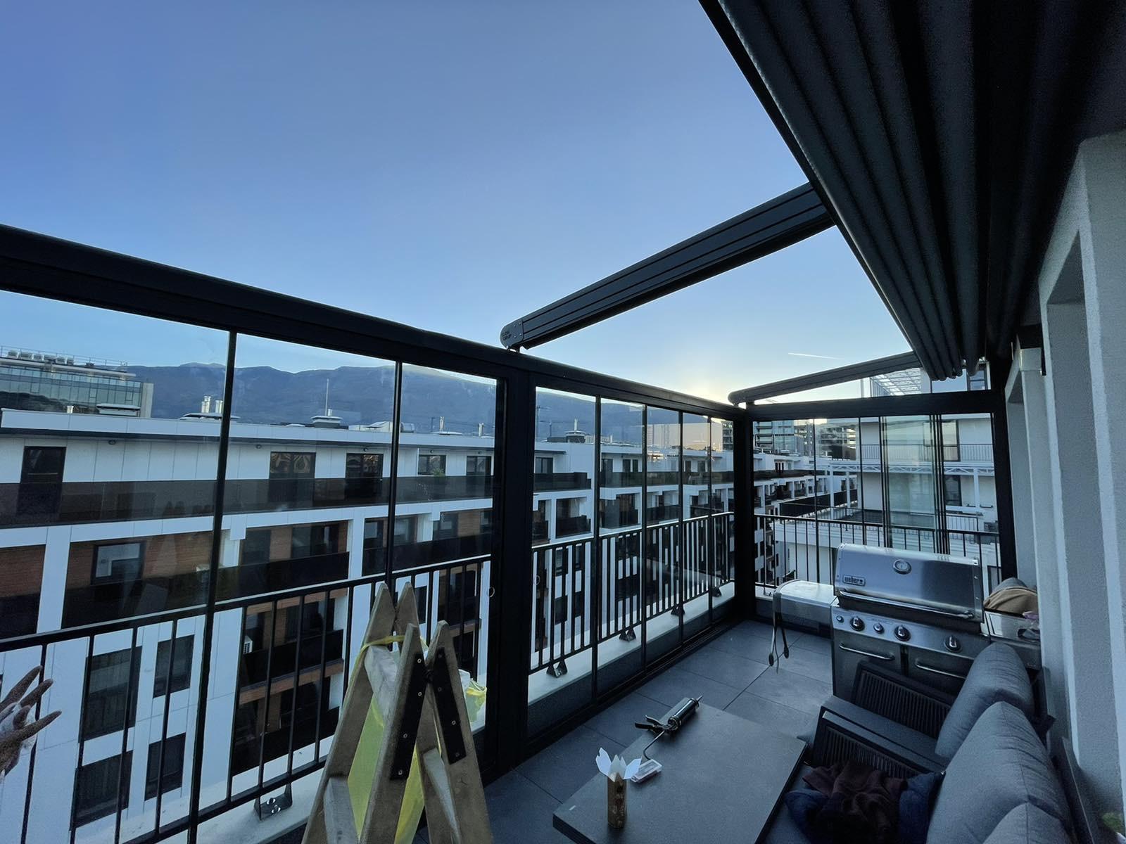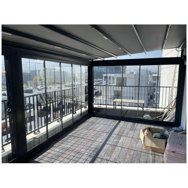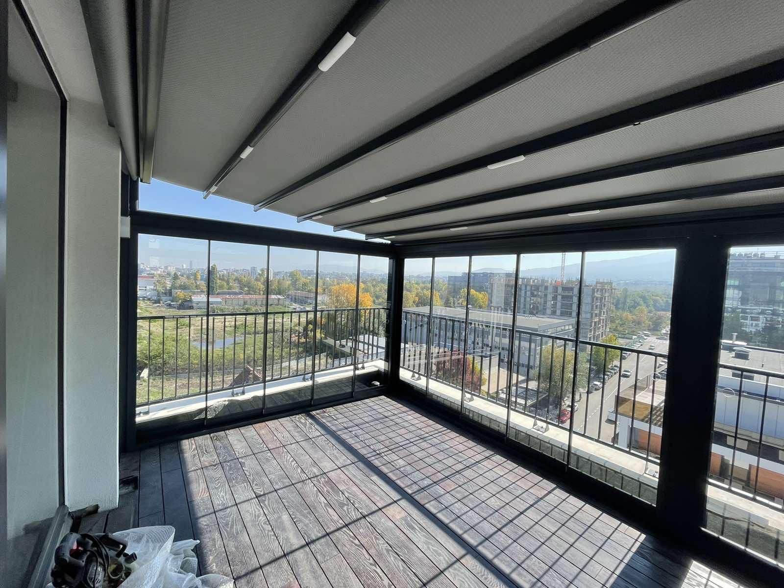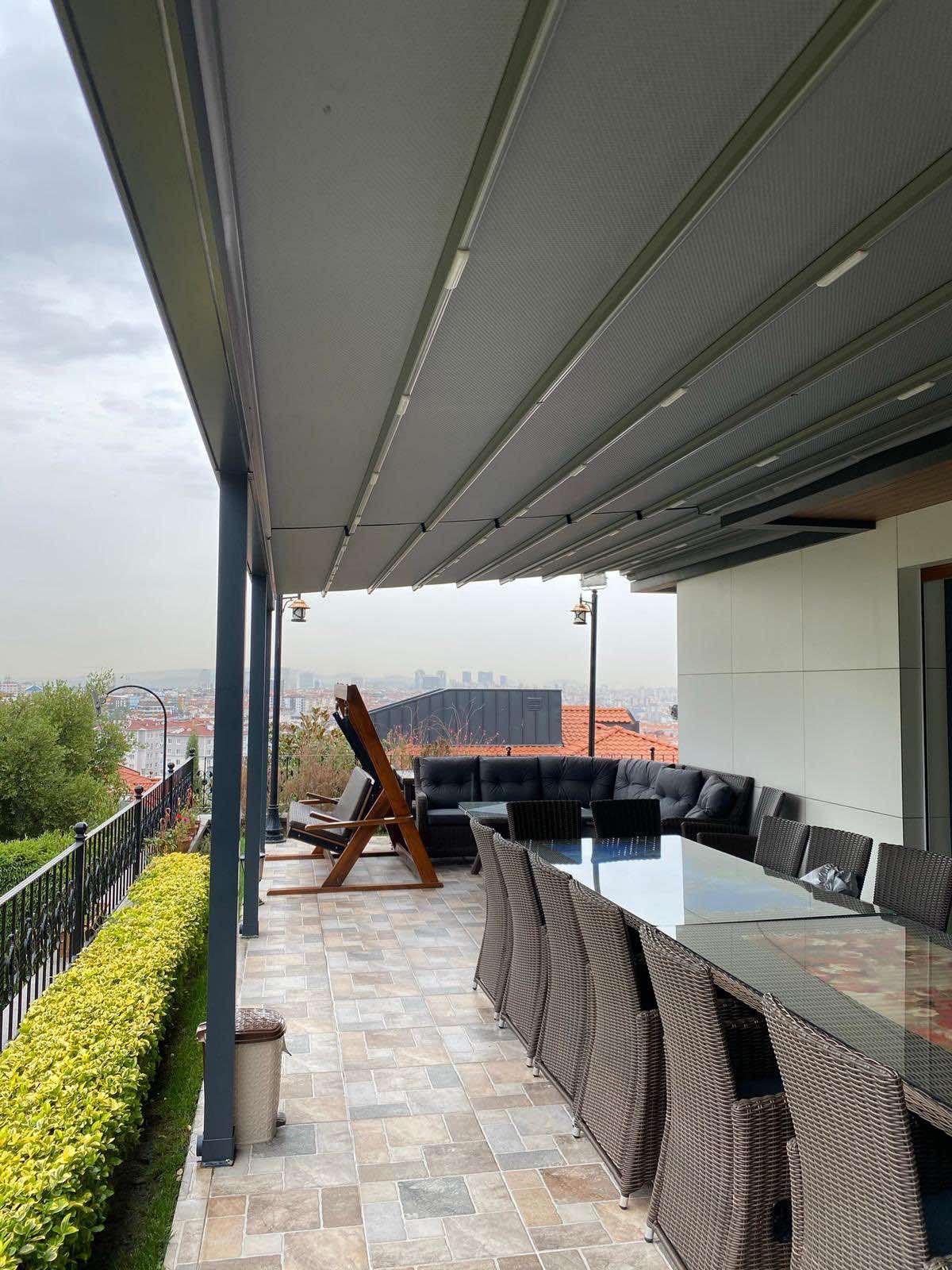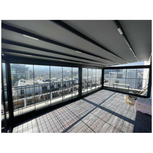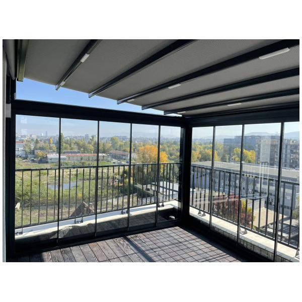 На тераси и балкони, особено когато се търси покрито място, което да се адаптира към различни метеорологични условия.