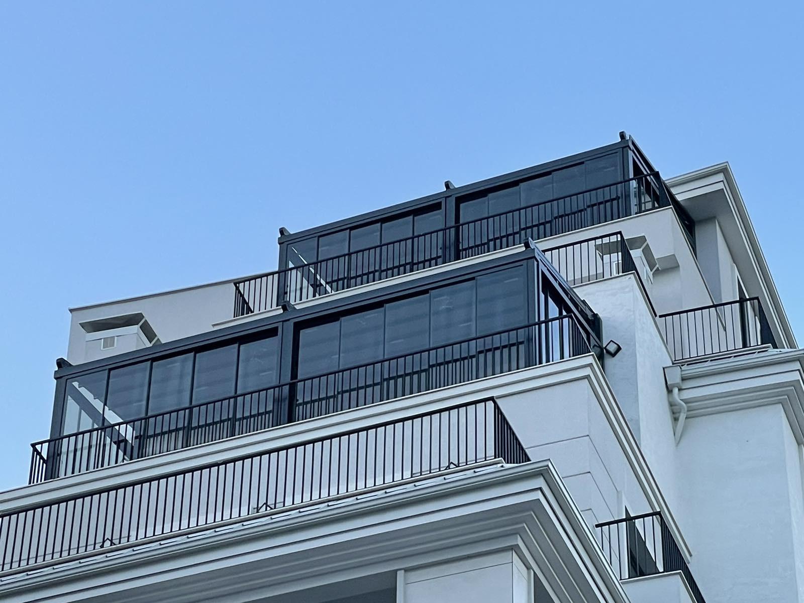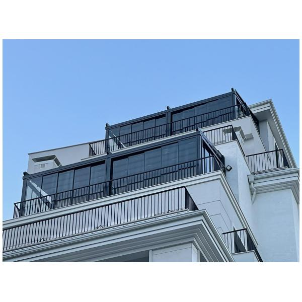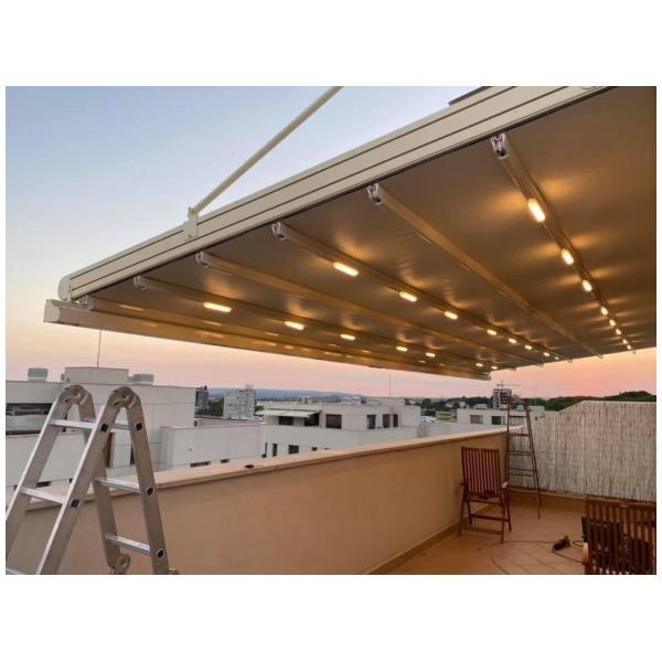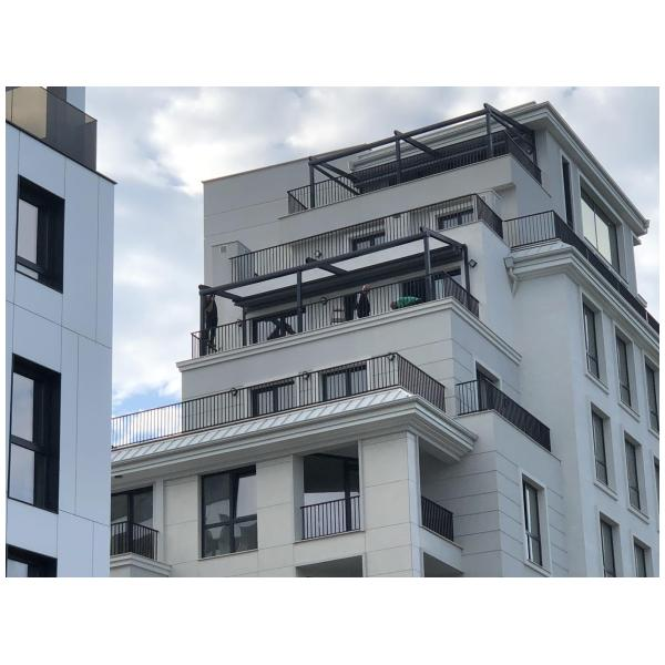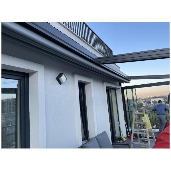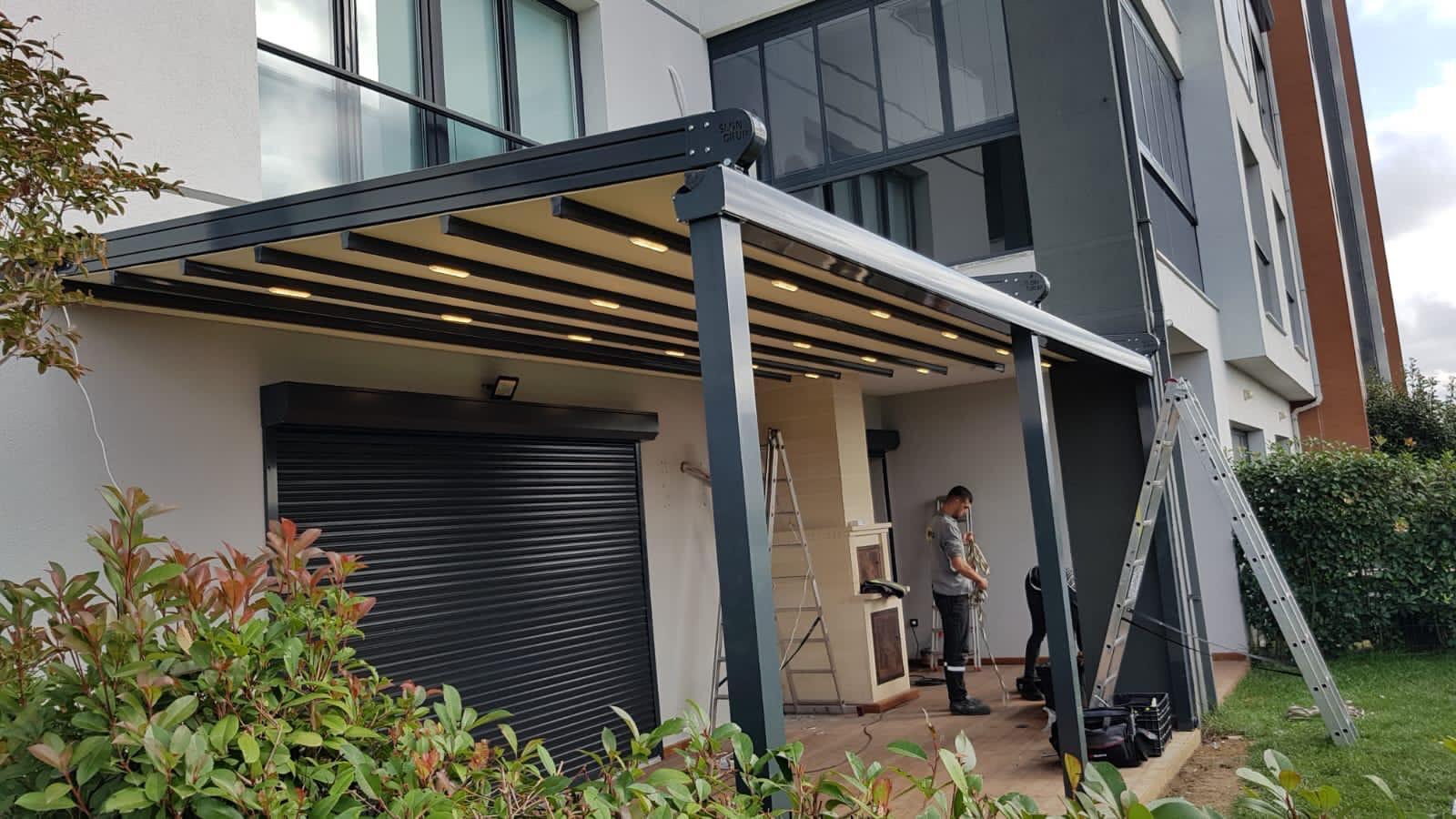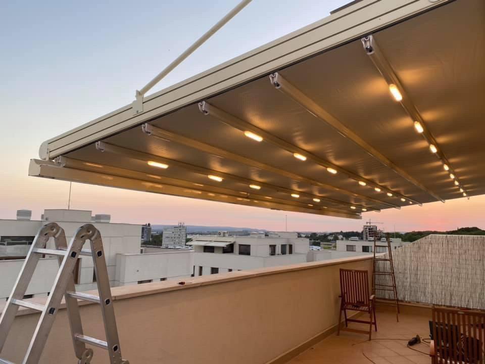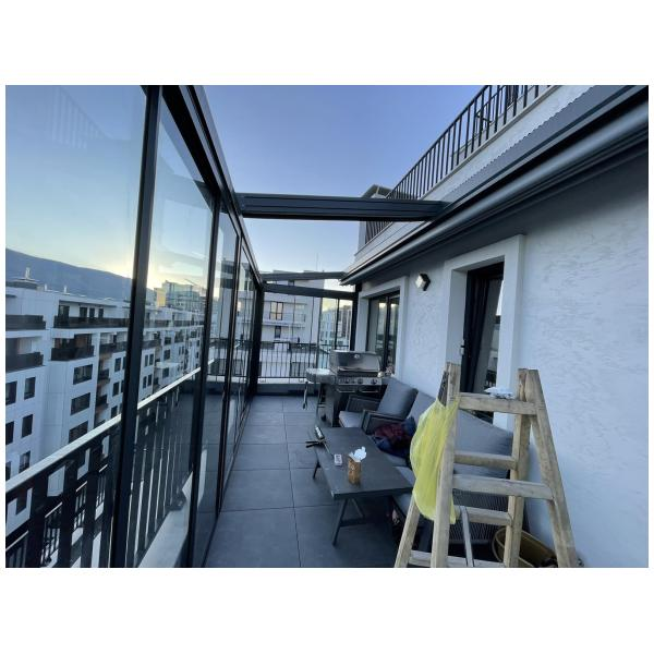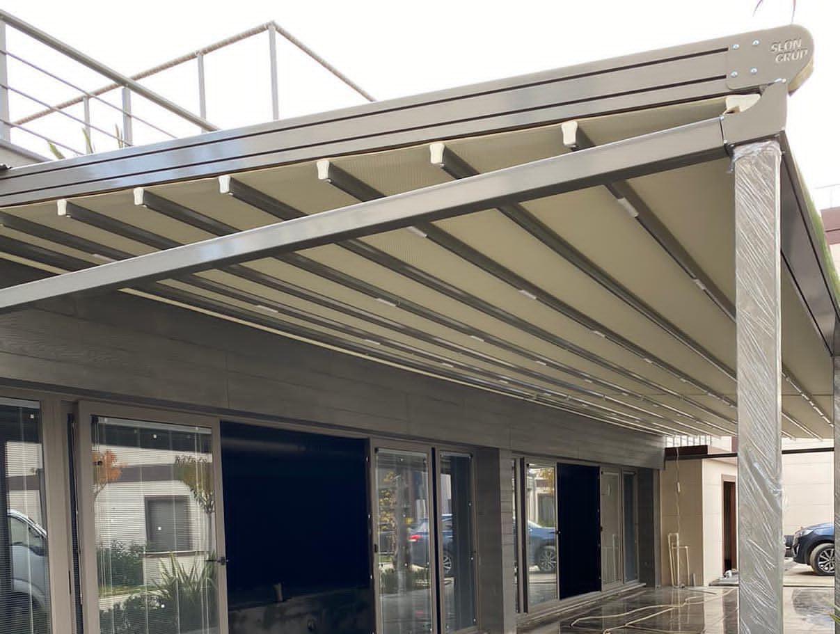 На тераси и балкони, особено когато се търси покрито място, което да се адаптира към различни метеорологични условия.