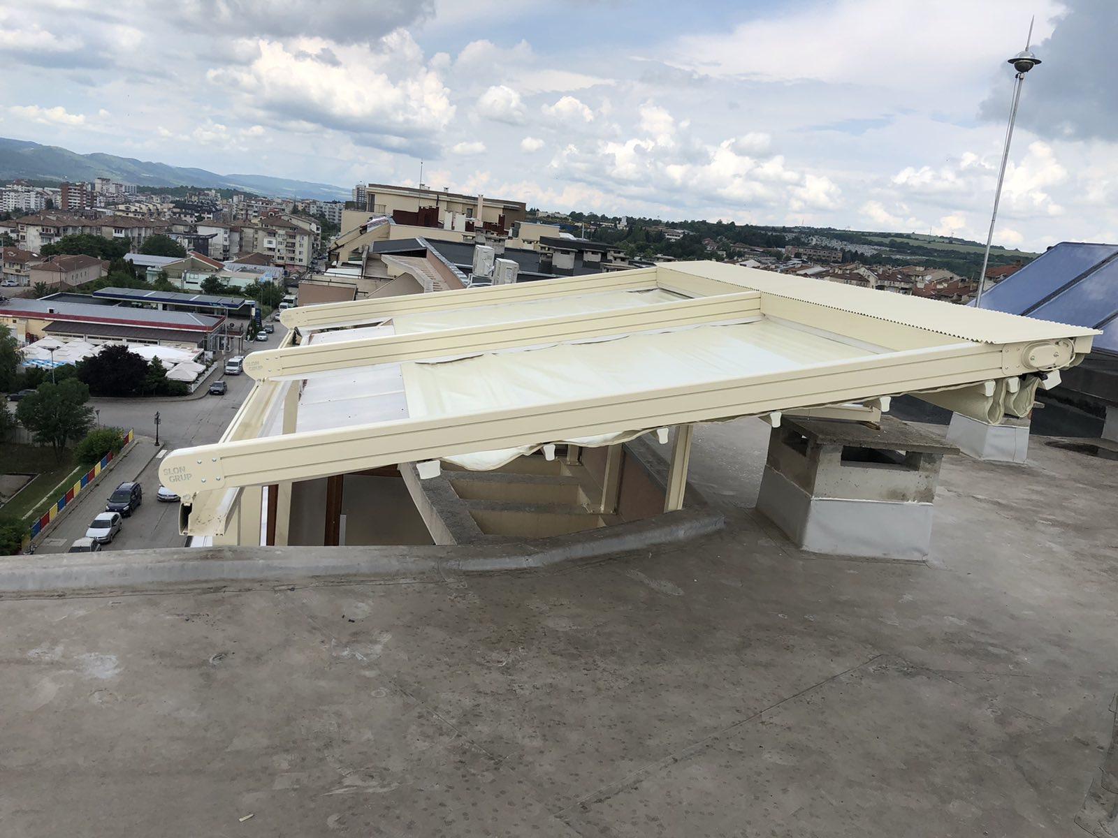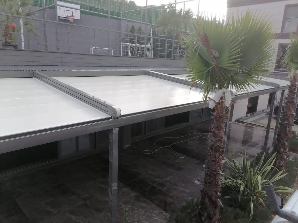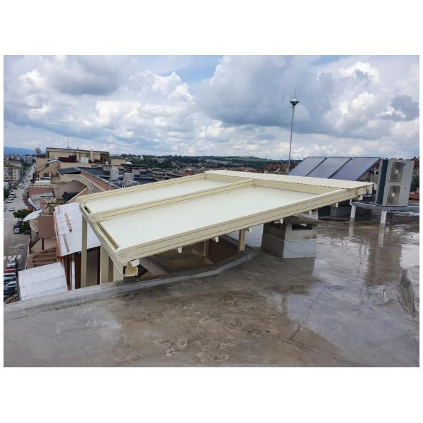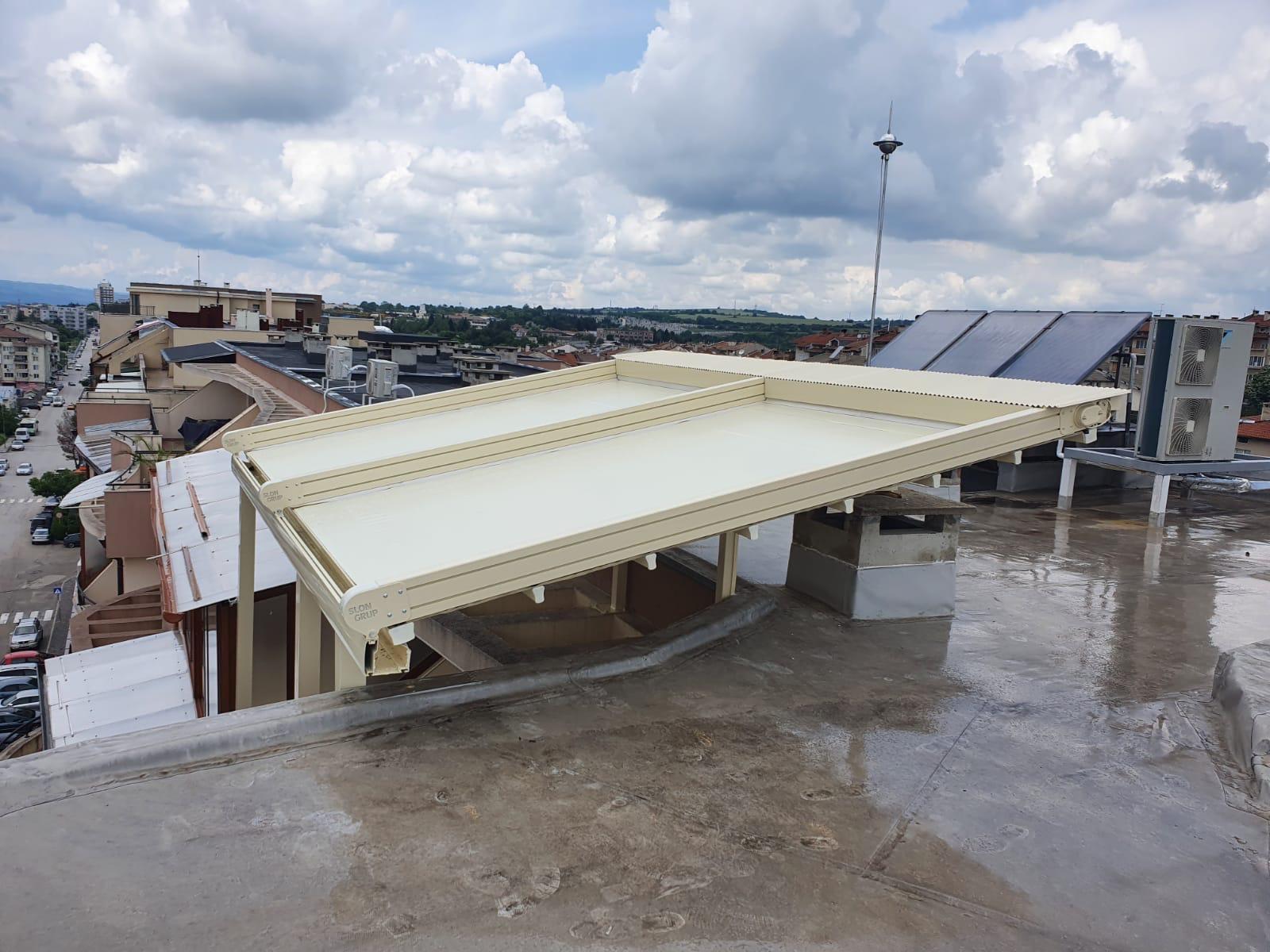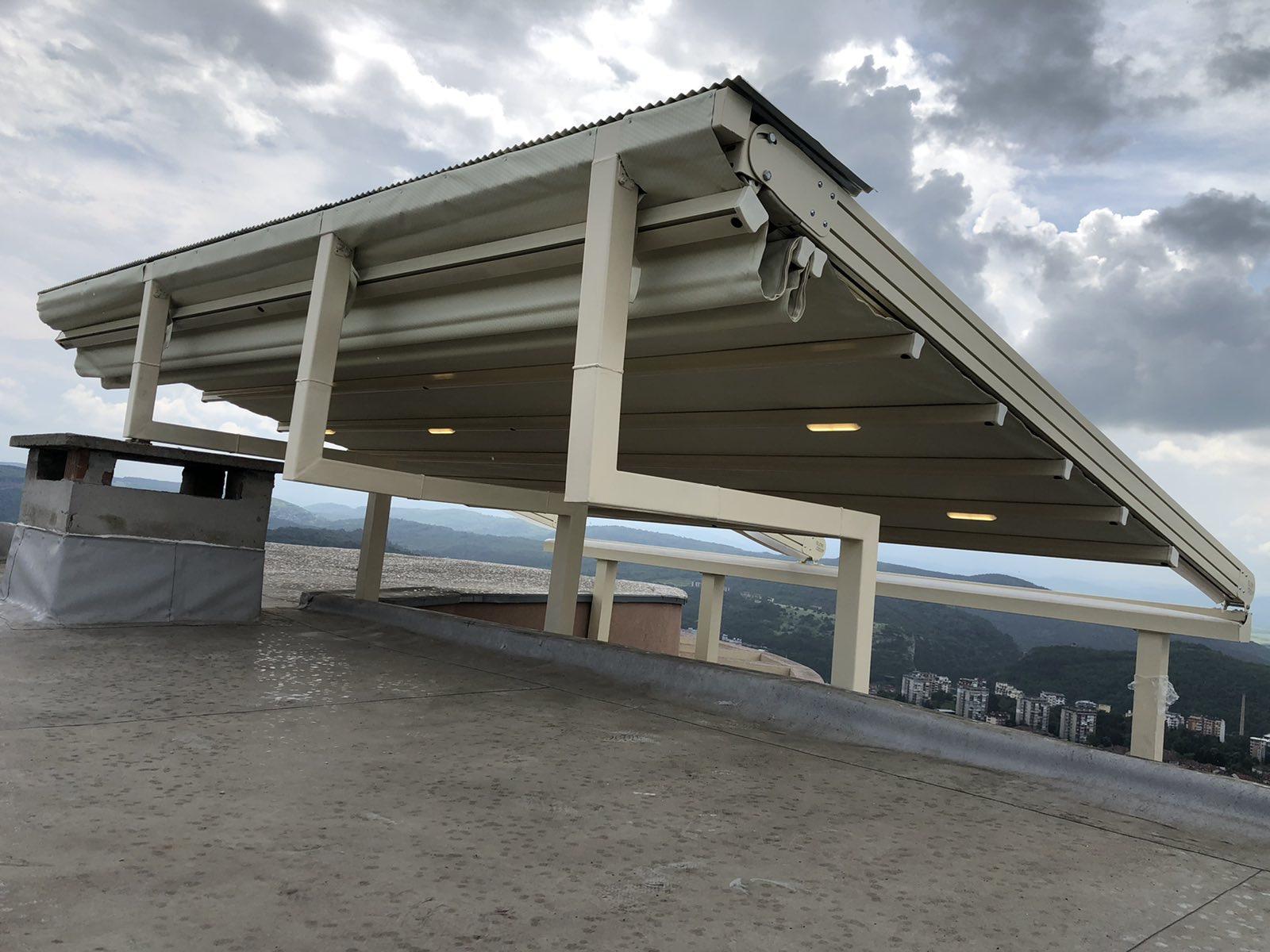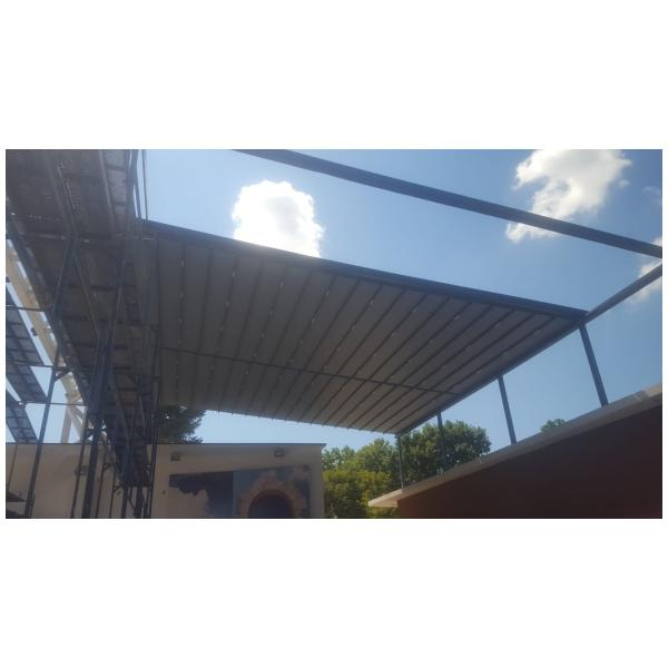 Покрив / ламели / материали: Може да е със статичен покрив (акрилно стъкло, поликарбонат), или ламелен покрив, който се върти.