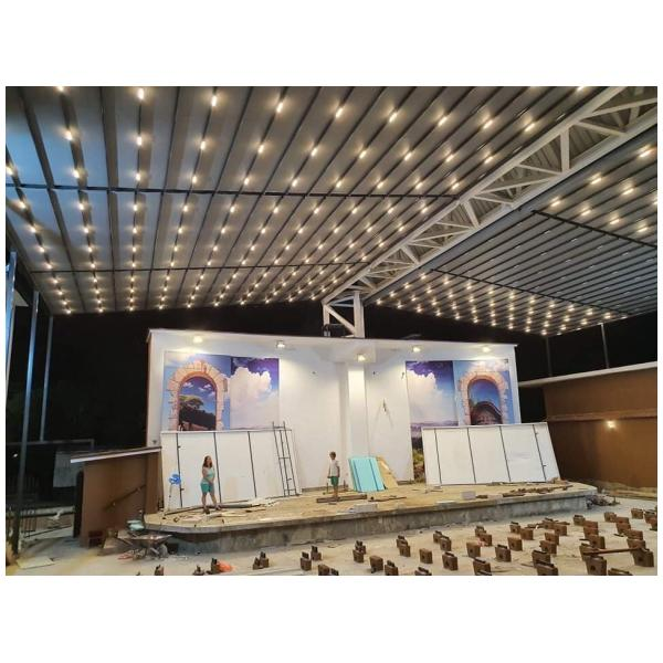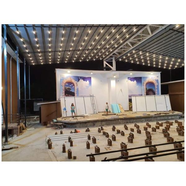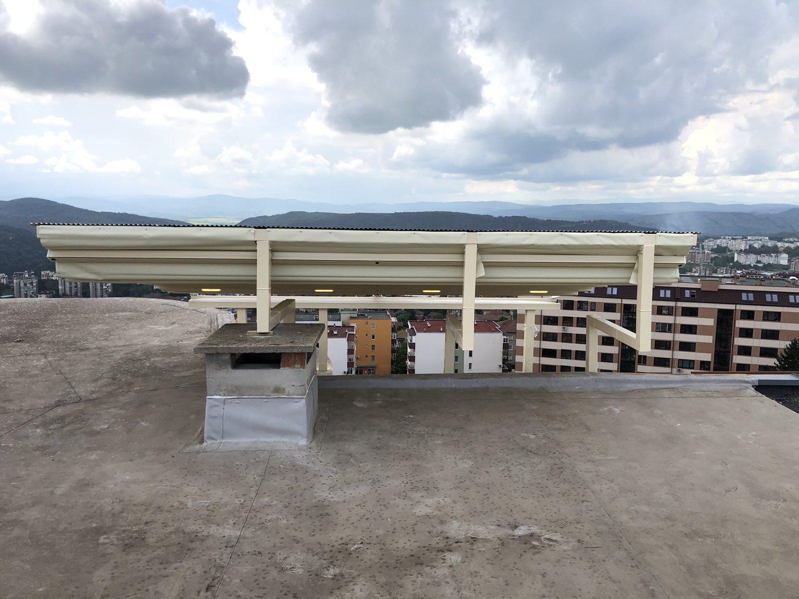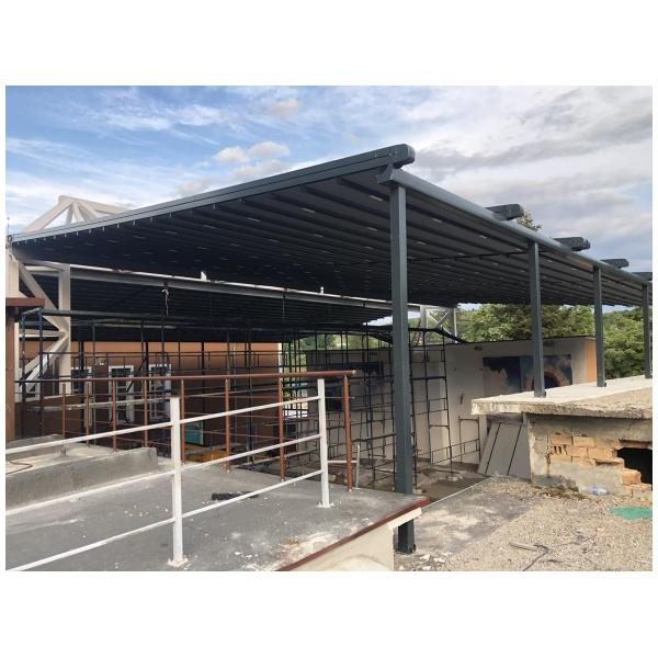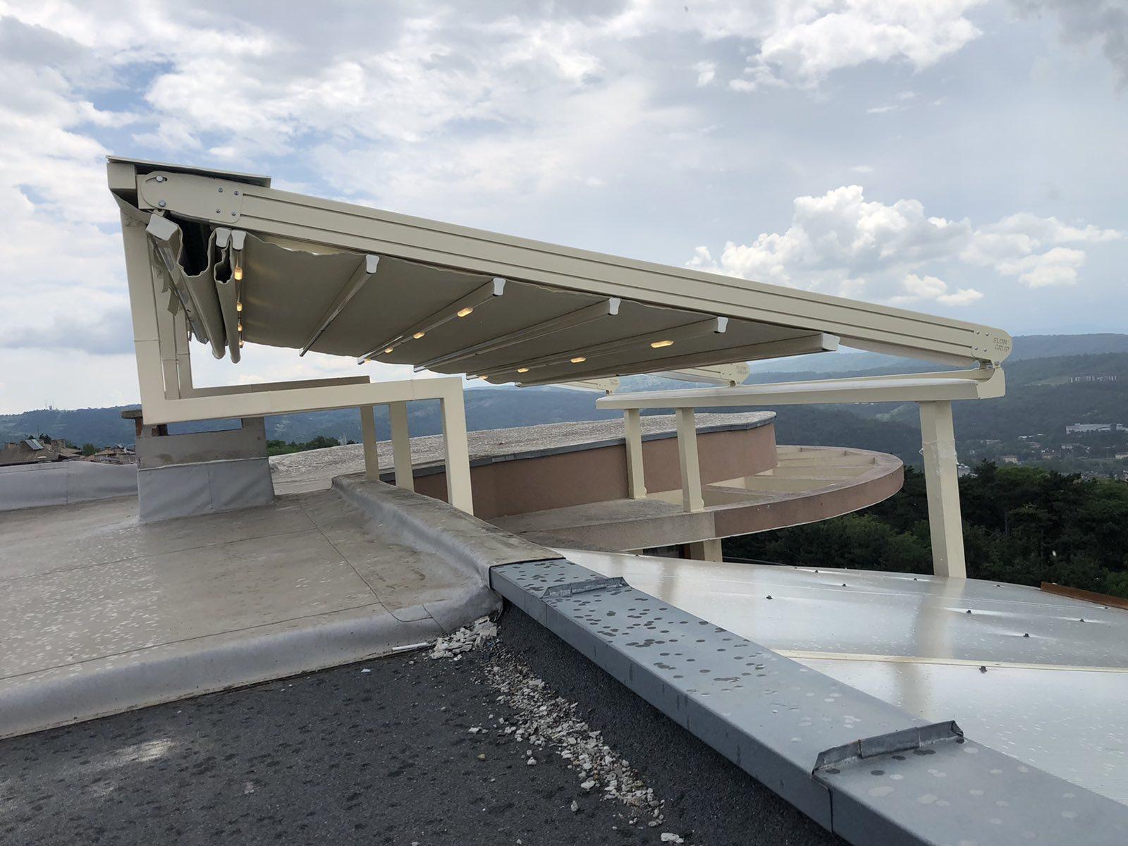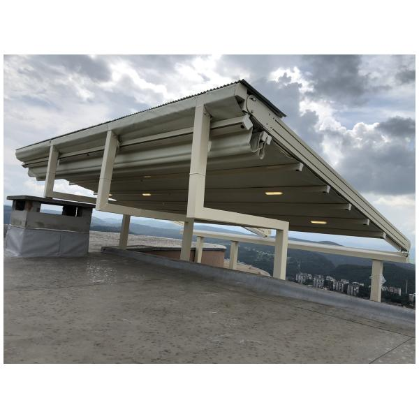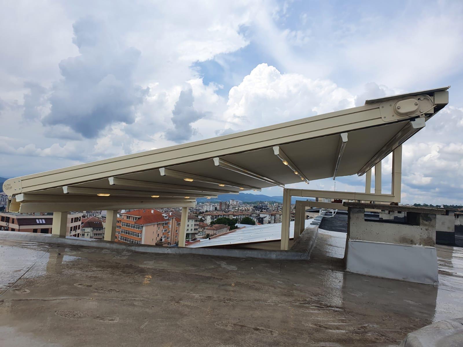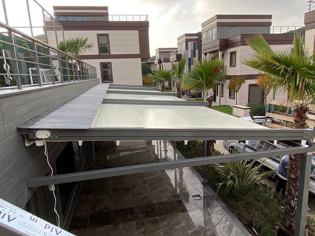 Покрив / ламели / материали: Може да е със статичен покрив (акрилно стъкло, поликарбонат), или ламелен покрив, който се върти.