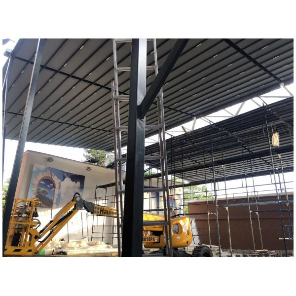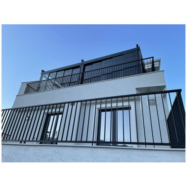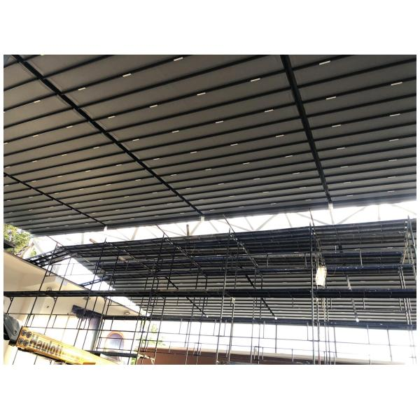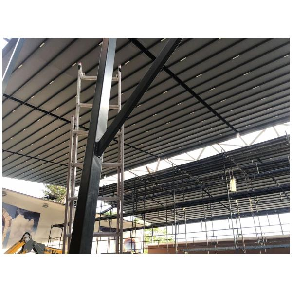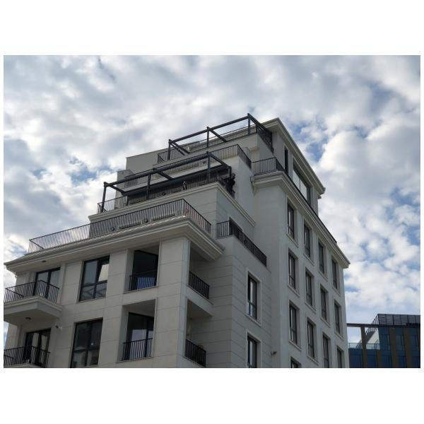 Материал на конструкцията: Алуминиеви профили (може да са екструдирани) с покритие (прахово боядисване, анодиране) екструдиран подсилен алуминий и прахово боядисан по RAL.