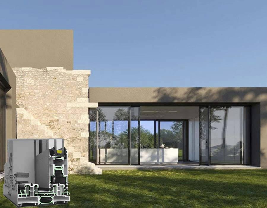 Системата предлага отлични показатели за топлопреминаване и шумоизолация, което я прави подходяща за енергийно ефективни сгради.