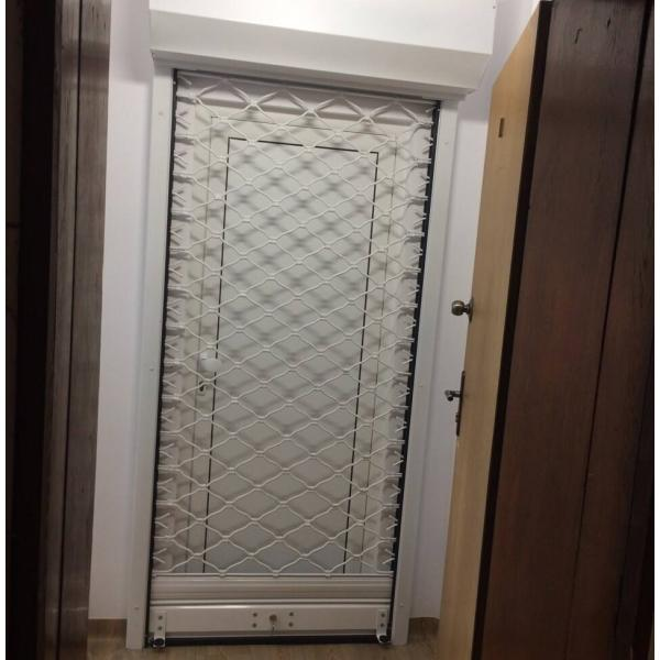Търговски обекти и витрини. Най-честото приложение е в магазини, аптеки, павилиони, шоуруми, в които е важно да се вижда стоката и след работно време. Оплетената структура осигурява вентилация и видимост, като същевременно защитава от влизане с взлом. Позволява монтиране отвън или отвътре на отвора (в зависимост от архитектурата).
