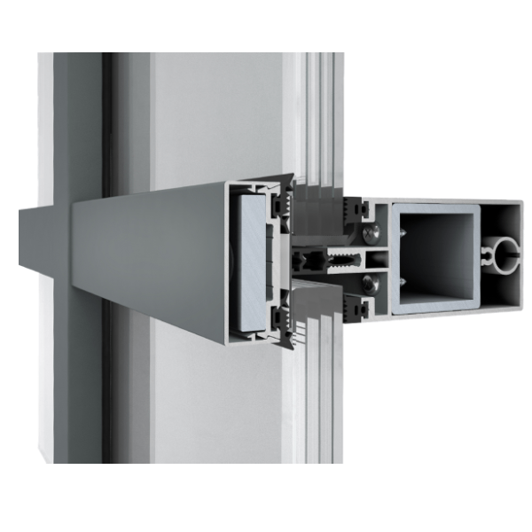 - Система за окачени фасади с вертикални и хоризонтални профили с видима ширина 50 мм.