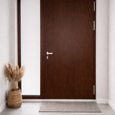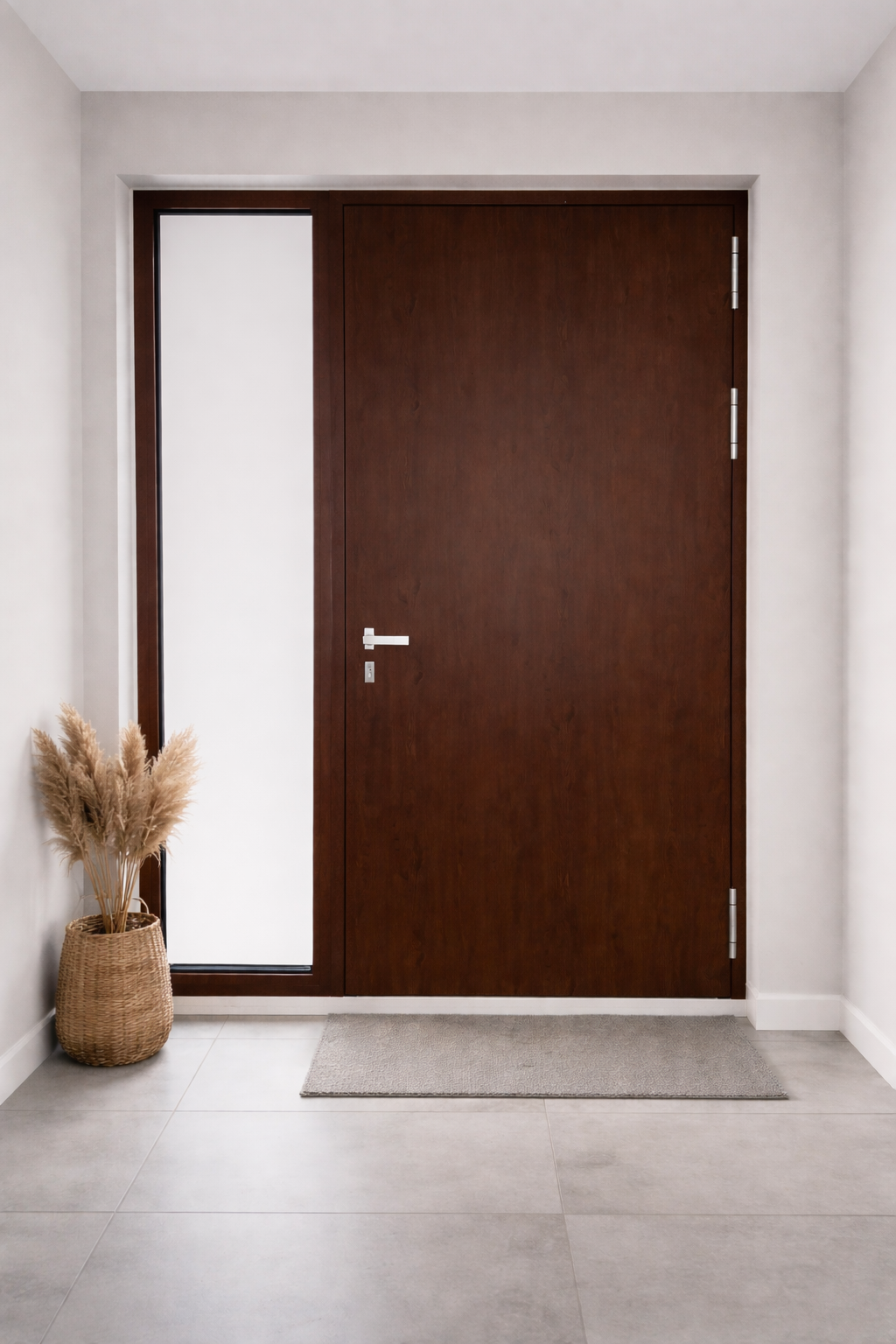 Представяме ви входна врата, изработена по индивидуалните размери и изисквания на клиента, съчетана със стилно странично остъкляване, което придава повече светлина и елегантност на входното пространство ![]()