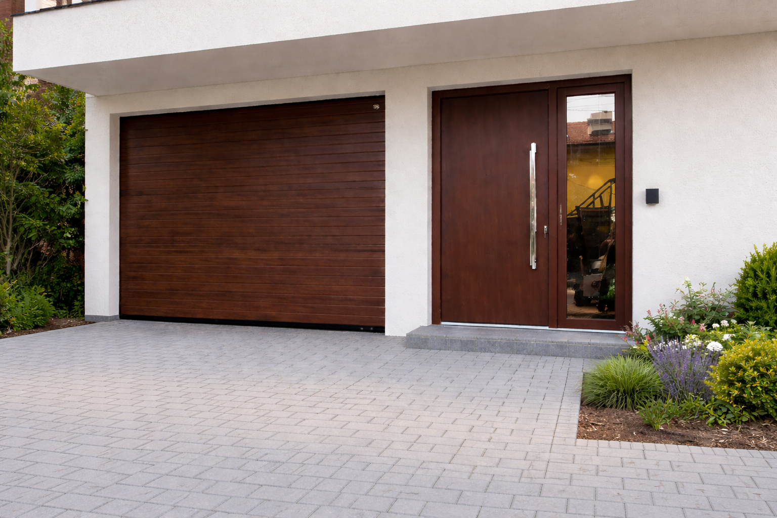 Към проекта има и модерна алуминиева секционна гаражна врата – надеждно решение, което комбинира функционалност, сигурност и съвременен дизайн.