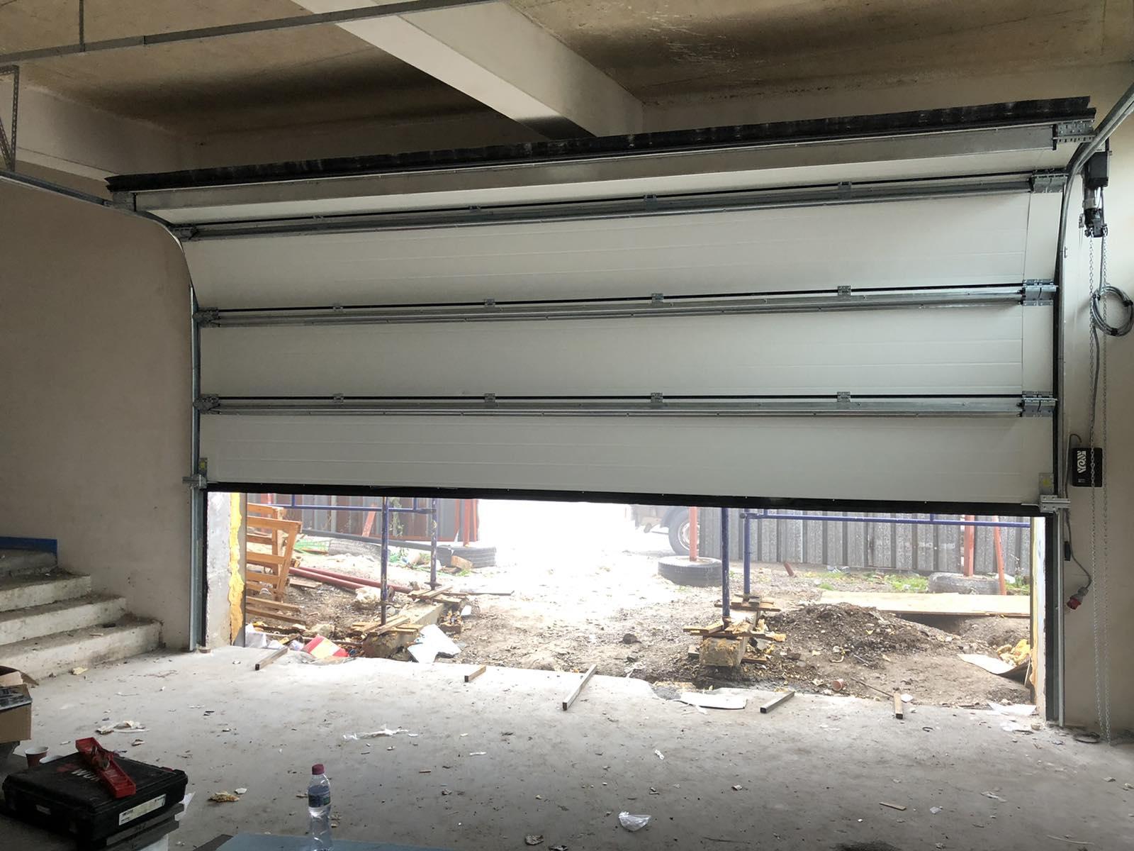 Секциите се движат по релси, закрепени под тавана на гаража.