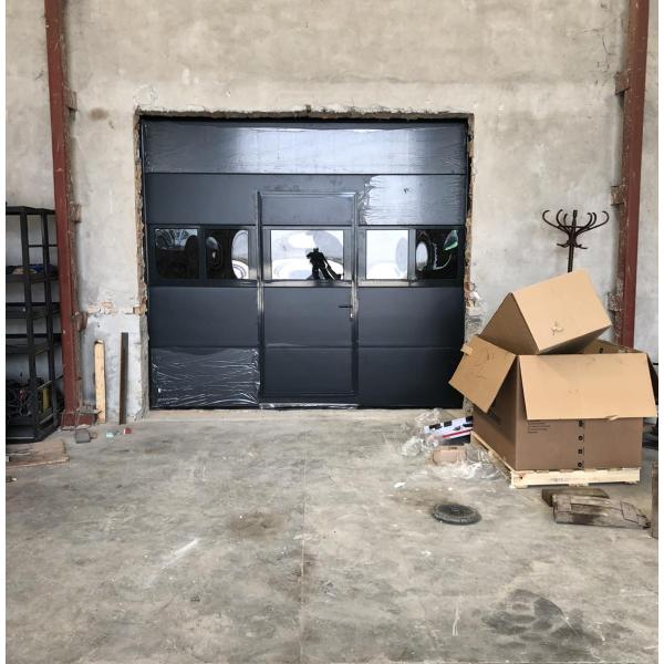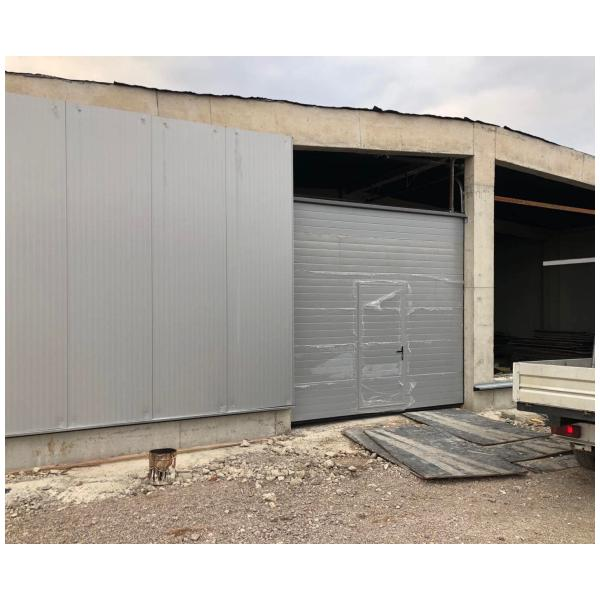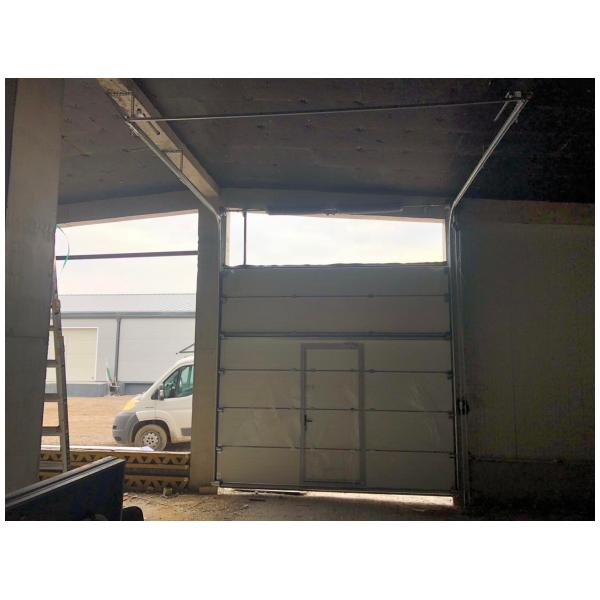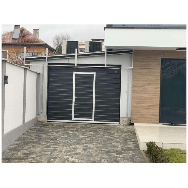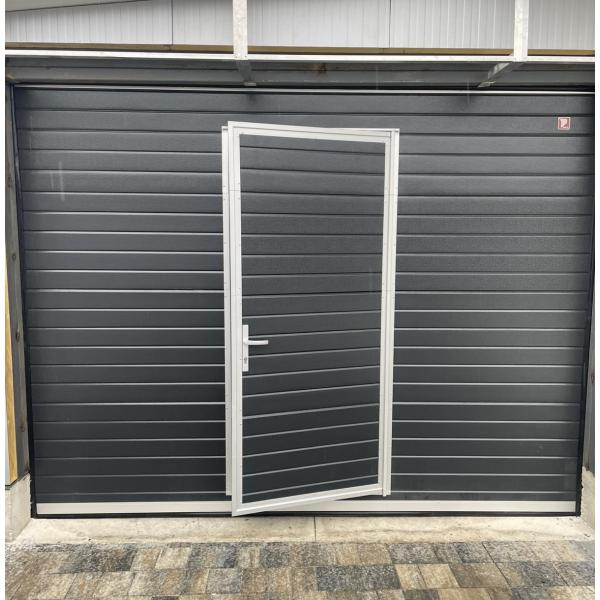 Вградена пешеходна врата. Позволява влизане и излизане без да се отваря цялата врата.